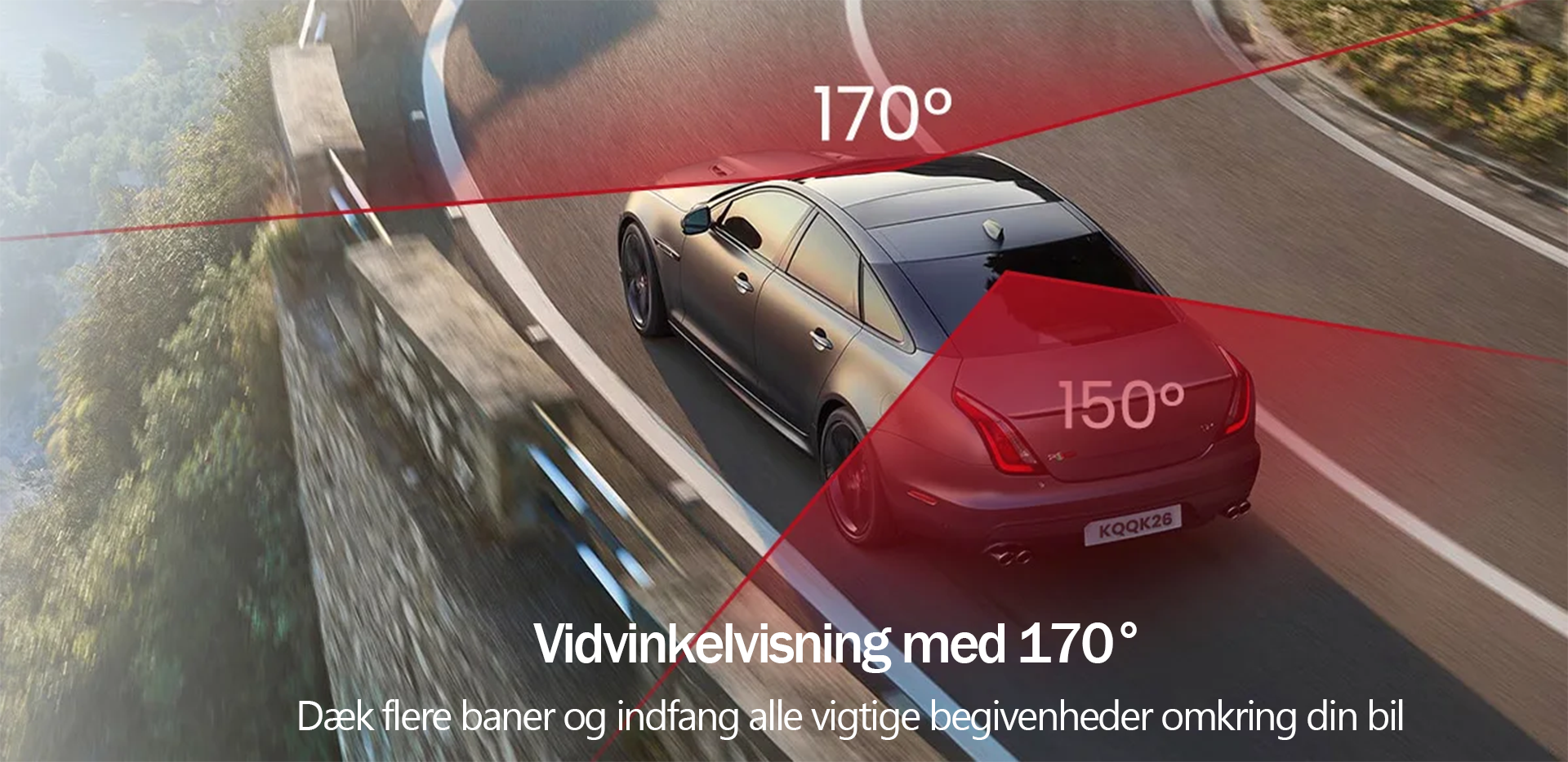 Synsvinkel:170 graders ultrabred betragtningsvinkel, sikrer ingen blinde vinkler og registrerer enhver køreoplevelse perfekt.