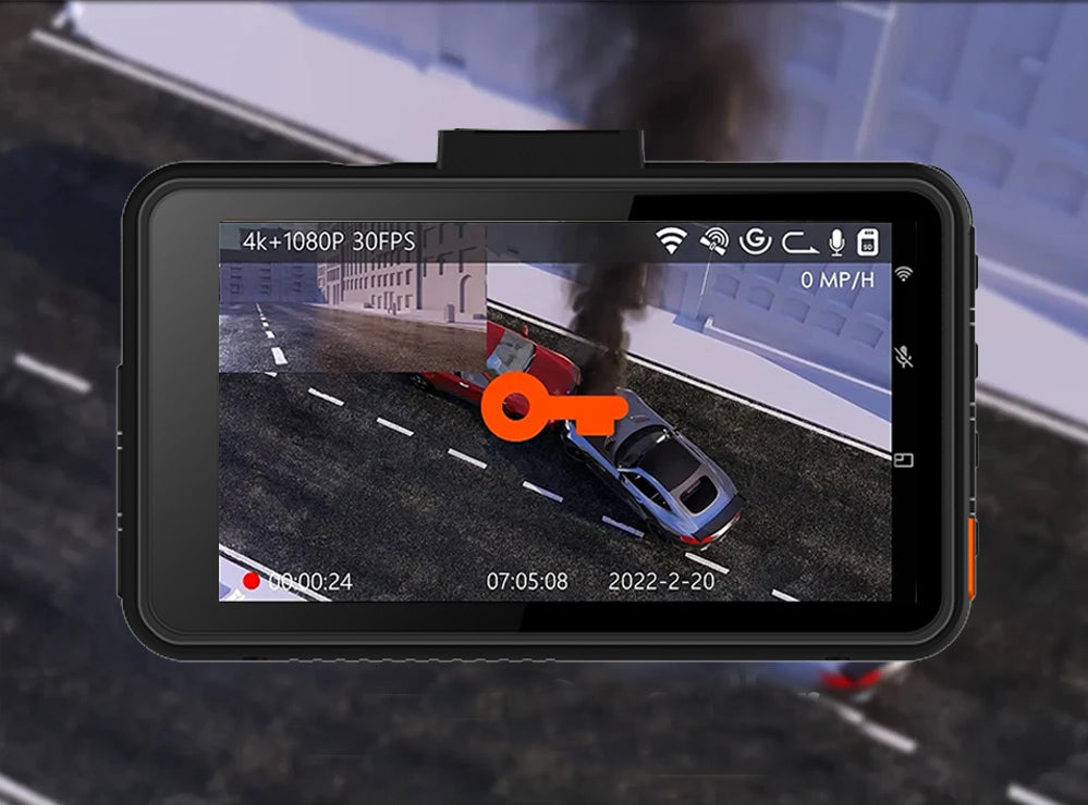 Den indbyggede G-sensor Dash Cam aktiveres ved stød og registrerer præcis nødoptagelse af, hvornår og hvor stødet fandt sted, og docker filen for at lette en yderligere inversion.